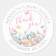 Ce charmant autocollant de remerciement est parfait pour un petit Fleur sauvage est sur le chemin ou Baby in Bloom baby shower. Au centre, un délicat agencement de fleurs sauvages d'aquarelle et de papillons clignotants crée une touche fantaisiste et élégante. Le design floral présente des teintes douces de rose, bleu, jaune et vert, apportant une touche de fraîcheur et de gaieté. Au-dessus des fleurs, "Merci !" est écrit en calligraphie de script rose, tandis que le texte supplémentaire peut être customisé avec le nom, le Baby shower et la date de l’événement de la maman-to-be dans une police serif gris moderne. Ce design simple mais élégant est entièrement personnalisable : vous pouvez ajuster le texte, les polices et les couleurs pour qu'ils correspondent à votre célébration.