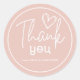 Mot de remerciement moderne un minimum d'autocollant rose pâle rond