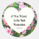Fleurs roses, feuilles verts, avec coeur au centre et citation de Ben Franklin : "Un véritable ami est la meilleure possession." Beau cadeau pour un ami.
