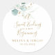 Complimentez votre événement mariage classique avec cette fin douce à un nouveau sticker mariage or classique rond début. Le design présente d'élégants feuilles d'eucalyptus or et vert d'aquarelle.