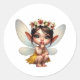 Sticker Rond Une magique petite fée qui s'accroupit