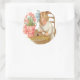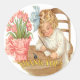 Une petite fille écrit une lettre à l'aide d'un stylo. Un agencement de tulipes se trouve sur la table à proximité. Modifier le texte en fonction de vos besoins