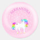 Sticker Rond Unicorn Arc-en-ciel rose filles mignonnes nommé