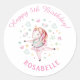 Sticker Rond Unicorn Ballerina Girly PInk fête d'anniversaire