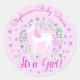 Sticker Rond Unicorn C'Est Une Fille Baby shower Rose Personnal
