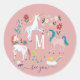 Sticker Rond Unicorn rose mignon filles magiques monogramme ann
