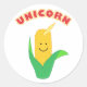 Cet autocollant a un drôle mignon maïs de dessin animé en essayant d'être une licorne. Vous pouvez personnaliser en changeant la couleur de l'arrière - plan. Il s'agit d'une conception amusante de jeu de mots qui convient à tous.