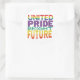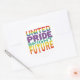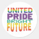 "United Pride Bright Future" dans un design audacieux et multicolore. Le texte est l'axe principal, en prenant le devant de la scène sur l'autocollant Imaginez un spectre vibrant de couleurs éclaboussant les mots, créant un sentiment d'unité et d'optimisme. Il n'y a pas d'images de personnes sur ce design, laissant le message puissant se tenir seul.