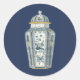 Sticker Rond Urne asiatique décorative en bleu et blanc