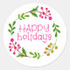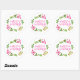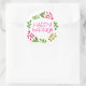 Sticker Rond Vacances joyeuses rose et blanc Wreath