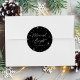 Des autocollants de vacances modernes avec "Marié et brillant" affichés dans un script écrit à la main, cerné par une bordure d'étoiles blanches contre un arrière - plan noir. Personnalisez les autocollants mariés et brillants en ajoutant vos noms ci-dessous. Les autocollants fonctionnent très bien comme les scellés d'enveloppe, pour sceller les sacs de faveur, et plus encore!