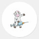 Sticker Rond Vache comme infirmière avec coeur et seringue