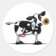 Soyez heureux avec cette illustration originale d'encre et de crayon d'une vache laitière qui s'accroche à un tournesol par Andie de Off-Leash Art™.