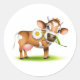 Sticker Rond Vache laitière au dessin mignonne avec fleur et he