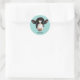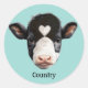 Sticker Rond Vache noire et blanche face sur bleu clair