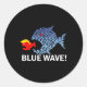 Sticker Rond Vague Bleue 2024 Gros Poissons Amusants Mangez Pet