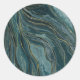 Sticker Rond Vagues aquarelles abstraites bleu sarcelle or