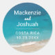 Vagues d'océan bleu turquoise profond venant à terre pour rencontrer le sable doux sur une typographie de style rétro moderne autocollant pour le conditionnement de cadeaux de mariage sur la plage ou les sceaux d'enveloppe. Cliquez sur 'personnaliser davantage' pour changer les polices, la couleur du texte ou le design.
