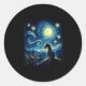 Sticker Rond Van Gogh Cowgirl Horse Starry Funny Night Horses L