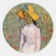 Sticker Rond Van Gogh, Jeune Fille debout ; Fond de blé