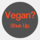 "Vegan ? Ferme-la." Ce drôle de dicton dit aux végétaliens d'une manière pas si subtile qu'ils peuvent être ennuyeux quand ils parlent de végétalien. Ce dicton anti-végétalien n'est pas tant anti-végétalien qu'anti-discours végétalien. Ce dicton anti-vegan fait un t-shirt drôle ainsi qu'un bouton amusant, aimant, mug ou autre cadeau pour un homme ou une femme omnivore qui ne veut pas entendre parler des vertus du véganisme.