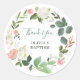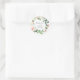 Ces autocollants tendance et simples présentent un feuillage vert aquarelle et des feuilles avec de jolies fleurs roses et blanches, ainsi qu'un script manuscrit moderne au centre d'une couronne florale. Ceux-ci peuvent être facilement personnalisés pour une utilisation lors d'une baby shower, d'un baptême ou d'une christmation, ou même d'une douche de mariée ou d'un mariage.