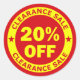 Vente de décharge 20% de réduction sur l'autocollant de détail.