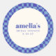 Autocollant Rond Classique de Mariage Personnalisé avec Motif Damier Abstrait Bleu Royal