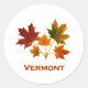 Le feuillage d'automne coloré de l'érable à sucre orne ce logo du Vermont. À l'automne, des érables à sucre et d'autres arbres du Vermont ont éclaté dans de brillants étalages de rouges, d'oranges, de jaunes et d'autres couleurs. Le feuillage du Vermont attire des lianes, des vacanciers et d'autres. En plus de leur beauté, les érables à sucre sont la source de l'emblématique sirop d'érable du Vermont.