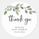 Ces baby showers minimalistes et minimalistes neutres pour le genre merci autocollants présentent des feuilles verts botaniques simples aquarelles sur un arrière - plan blanc et propre. La typographie noire tendance dit "merci" et ajoute une touche supplémentaire de style moderne.