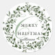 Sticker Rond Vert & blanc Fleur sauvage moderne Wreath Noël