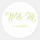 L'autocollant parfait pour vos besoins de projet, cet article a un motif blanc et vert citron. Avec une police verte de chaux écrite sur un arrière - plan blanc, les initiales du couple sont au centre avec la date du mariage en dessous. Choisissez parmi différentes formes.