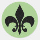 Une grande fleur de lis sur un arrière - plan vert orne cet autocollant, ce qui en fait un sceau d'enveloppe parfait pour un Mardi Gras de la Nouvelle-Orléans ou une soirée à thème parisienne.