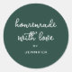 L'étiquette Vert forêt fait maison avec amour présente une calligraphie blanche élégante sur un fond vert forêt riche. Parfaite pour étiqueter les produits de boulangerie, les cadeaux faits main, les bougies ou les objets artisanaux, cette étiquette personnalisée ajoute une touche chaleureuse et sincère à vos créations maison. Le design simple mélange charme moderne et rustique, ce qui le rend idéal pour les artisans et l'emballage de cadeaux.
