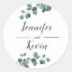 Célébrez votre amour avec notre "Eucalyptus de verdure moderne mariage personnalisé Sticker rond classique". Présentant un design contemporain inspiré de l'eucalyptus luxuriant, chaque autocollant est un ajout chic à vos détails mariages. Customisez-le avec vos noms ou votre date de mariage pour une touche personnalisée, transformant les faveurs et la décoration en déclarations botaniques modernes. Plus qu'un autocollant, c'est un symbole de débuts frais, où la verdure moderne rencontre le charme personnalisé. Élever votre mariage avec cet autocollant spécial, une fusion d'esthétique d'inspiration nature et de style contemporain.