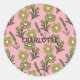 Sticker Rond Vert rose rétro Y2K Funky Hippie Flower Motif