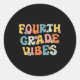 Sticker Rond Vibes de 4e année Équipe Rétro 1er jour de Scho