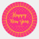 Sticker Rond Vibrant rose Starburst Script Bonne année