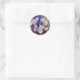 Sticker Rond Vibrante Art Abstrait Violet, Bleu et Jaune