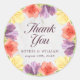 Cette élégante autocollante de mariage florale présente des fleurs vibrantes avec les mots "merci" dans un script tendance, le tout sur un fond en marbre pâle.