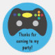 Un autocollant de fête amusant avec un contrôleur de jeu vidéo. L'arrière - plan est bleu et le texte dit "Merci d'être venu à ma fête !" Personnalisez cet autocollant avec votre propre texte. Vous pouvez également modifier l'arrière - plan de couleur en cliquant sur Customiser.