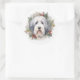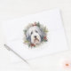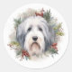 Sticker Rond Vieux anglais Sheepdog Christmas Wreath Festive Pu