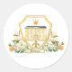 Cet autocollant rond présente une crête royale au sommet avec un bâtiment de style château jaune, et une couronne royale entourée par la bordure de crête. Le fond de la crête est orné d'un arrangement floral et d'une bannière où vous pouvez personnaliser avec un nom.