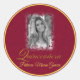 Collier de Quinceañera rouge et bordeaux avec un élégant motif de vigne avec feuilles, fleurs et papillons. Le design des vignes et des fleurs encadre le modèle photo avec un effet défraîchi. Le texte Quinceañera dans la fausse parties scintillant.