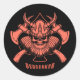 Crâne viking à cornes et haches de bataille croisées, sur fond de pique, avec légende "Berserker", en rouge/noir. T-shirts, sueurs, boutons, tasses, cadeaux.