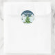 Sticker Rond Village de neige de Noël avec arbre de Noël