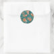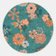 Sticker Rond Vins Et Fleurs À Motif Orange Turquoise