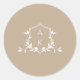 Elégante végétation botanique ornée de crête, monogramme mariage, autocollant beige.