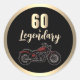 Vintage Motorcycle 60th Birthday Bike Classic Round Sticker. Bold motorcycle-themed birthday sticker! Featuring a striking vintage motorbike illustration and a black background, this design is perfect for any biker fan. Ideal for milestone birthdays, biker club parties, or anyone who loves life on two wheels.