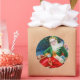 Vintage Noël santa claus autocollant de fête. Vintage santa claus avec cadeau.
